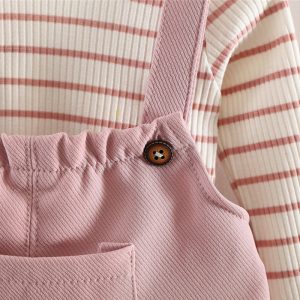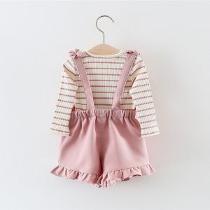 Girl’s Clothing Sets Striped Tops + Suspender Pants